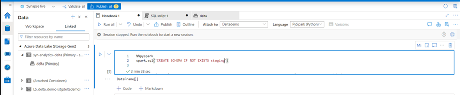 2. The schema gets registered as Database in Delta Lake.