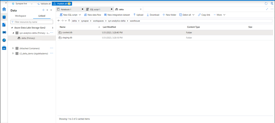 The Delta Lake in Synapse is created on top of ADLS Gen2.